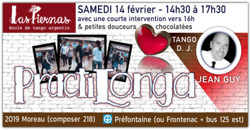 Nous avons différents style de soirées, la PractiLonga est justement dédiée à nos étudiants et elle est gratuite pour les élève de niveau DÉBUTANT de la session en cours ! À l’école, on prend le soin de vous sensibiliser à savoir comment se déroule une soirée dansante et comment fonctionne la circulation sur la piste. Vous pouvez venir nous voir et vous familiariser avec nos autres soirées dès le début.